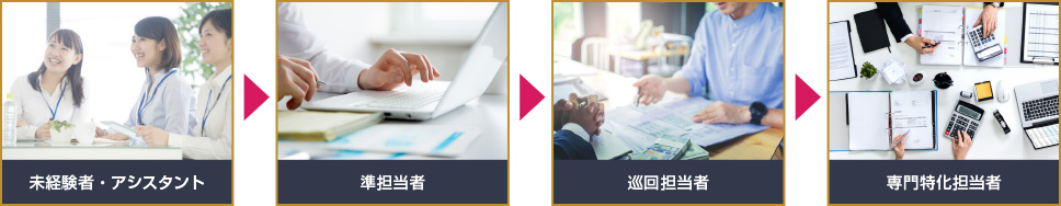 4階層別の研修プログラムで、未経験者が一人前の巡回担当者に成長するために