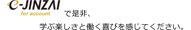 e-JINZAI for accountで是非、学ぶ楽しさと働く喜びを感じてください。e-JINZAI for accountで是非、学ぶ楽しさと働く喜びを感じてください。