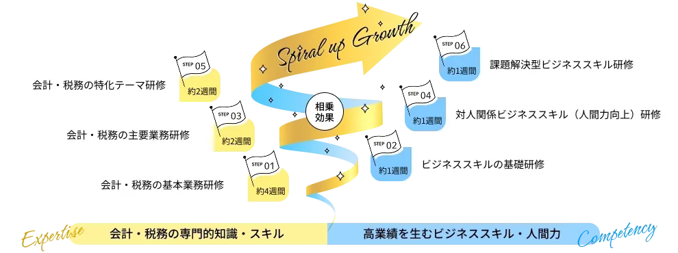 両者の相乗効果で、会計事務所職員のスキルと成長のスパイラルアップを実現することが可能に。